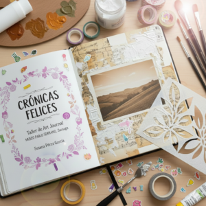 Ciclo de 12 talleres creativos, que se desarrollarán uno al mes, que invita a plasmar sus recuerdos en un art journal, cuaderno artístico personal mediante técnicas de mix media, que funcione como memoria emotiva y estética, con un enfoque beneficioso para tu bienestar emocional.
